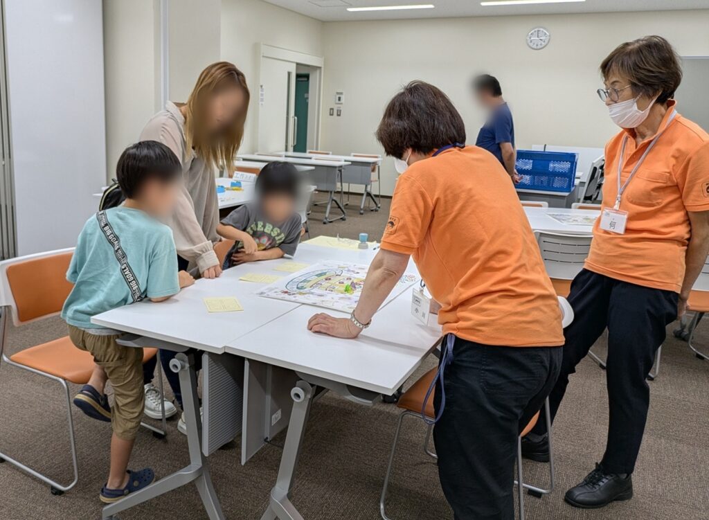 「すごろく」ではSDGsにとって良い行動で前進、悪い行動で後退します。途中にクイズゾーンもあり、「フードドライブってなに?」「点字ブロックってなに?」など、小学生の低学年では難しい問題もありますが、「かるた」同様にチームで答えを考えます。